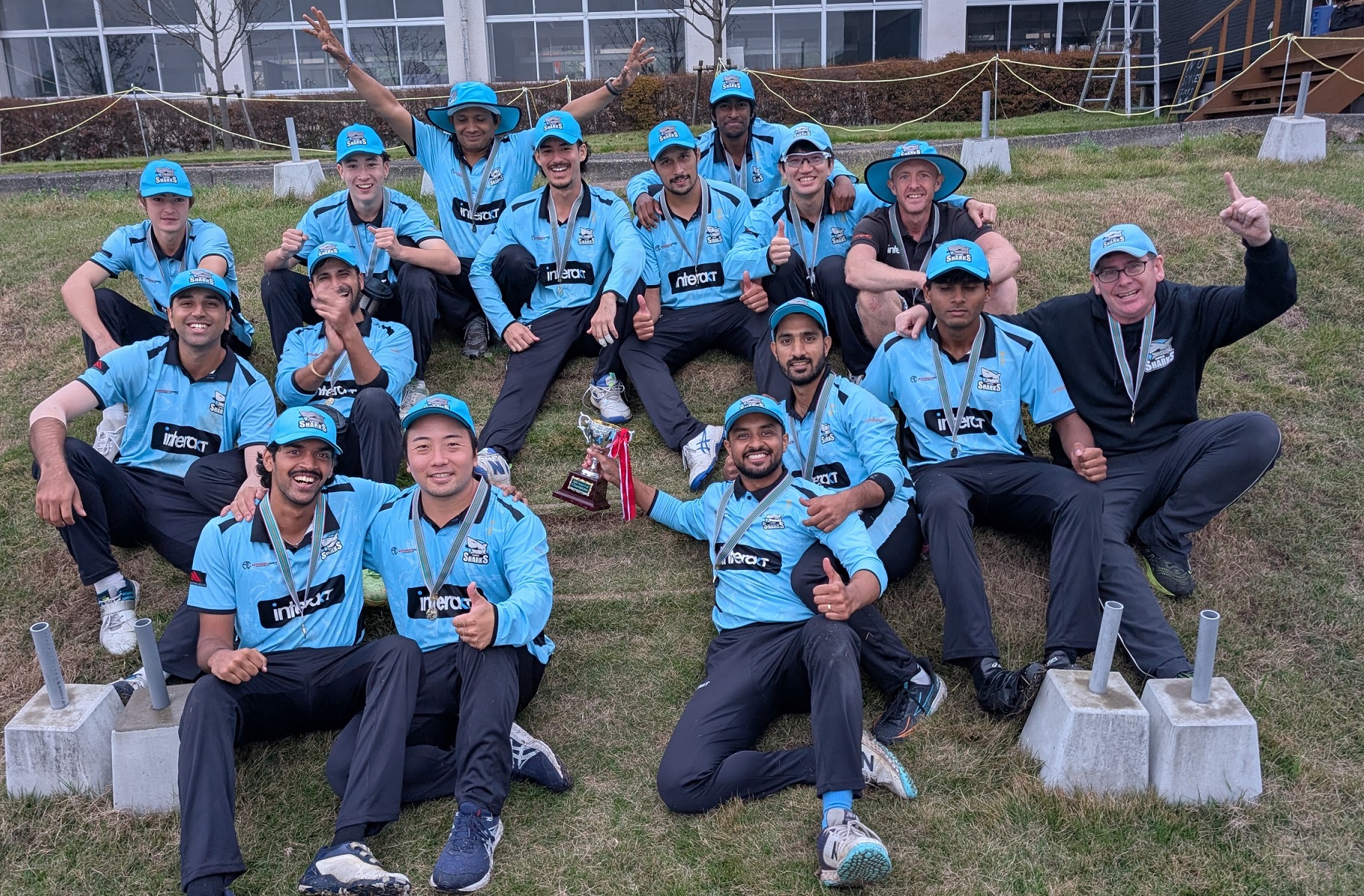 After lunch (at which no mutton curry was eaten), a confident Sharks faced off against the Kobe Hawks, who had beaten the Nagoya Bengal Tigers in their semi final match. The Sharks opted to bat first, having won the toss, but their confidence quickly took a knock as wickets started to fall and by the end of the 9th over things were looking dire with the score on 63/6. Captain Abhi, Muneeb and Manav fought back and added some vital runs and took the Sharks to 133/9 by the end of the innings. What followed next was a nail-biting back and forward between the Sharks bowlers, Hawks batters and Sharks fielders. The first ball almost saw the Hawks opening batsman dismissed, but for a fumbled catch, however few other chances came and by the half way point only one wicket had been taken. The Hawks batsmen were playing a patient game, with the threat of a breakout was ever present, and by the 17th over the score was 104/3. 3 overs to go and 30 runs needed…The 18th over went firmly the Sharks way with Tim taking 2 wickets for only 1 run after successfully bowling 6 yorkers in a row, however the Hawks fought back hard in the 19th and took 14 runs. At the start of the last over the Hawks needed 15 runs from 6 balls. The pressure was immense as Muneeb stated to bowl – a pressure that only increased as his first ball went for 2 byes and the next 2 went for singles. 11 runs needed from 3 balls. The 4th ball was hit for a 6 – 5 runs needed from 2 balls. Muneeb tried to bowl a wide yorker and pitched it too wide – 4 runs needed from 2 balls. Same plan again, same result…3 runs needed from 2 balls. Everyone watching, including the scorers, were on their feet. Muneeb changed tactics – next ball wicket! 2 runs needed from 1 ball. Last ball, pitched too full, hit into the air and coming down into the hands of captain Ahbi – The Sharks had won it! Tim was awarded man of the match for his last 2 overs that took 3 wickets for 4 runs, though there were several Sharkies that would also have been deserving of the award. A great team performance. You can watch the match on YouTube.
